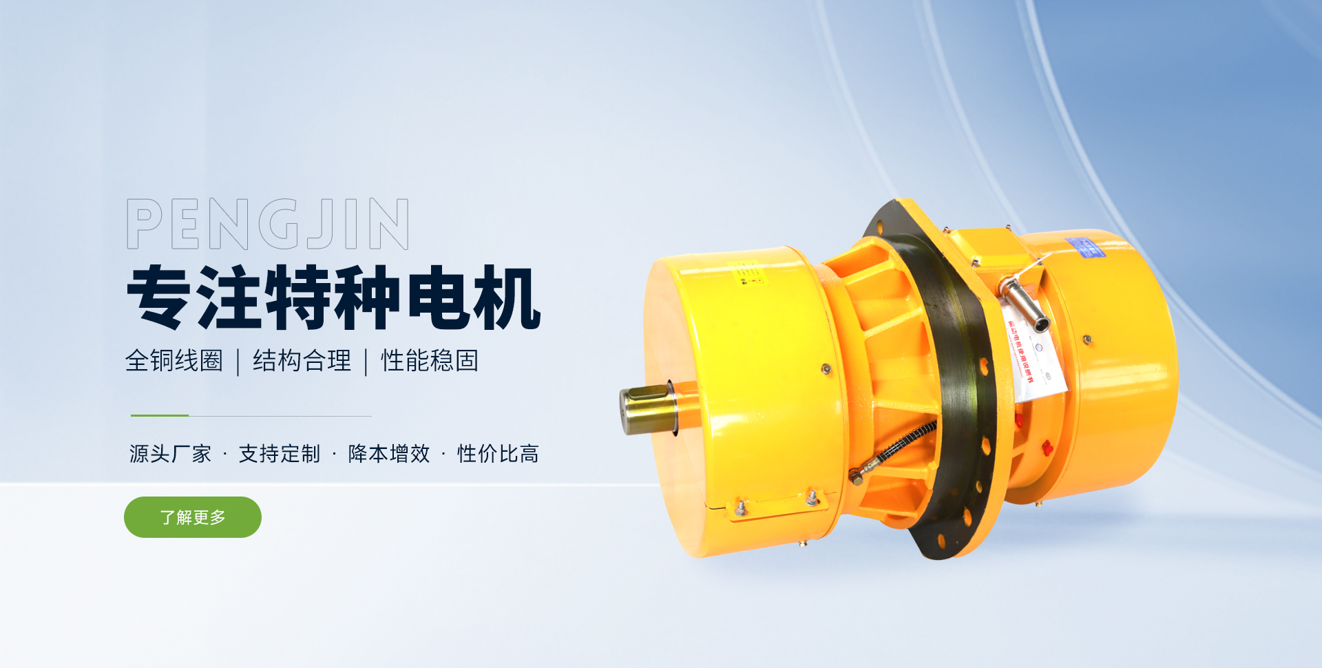 新鄉市鵬錦特種電機有限公司是生產各類特種電機的制造商。 公司位于中原地區的河南省新鄉市關堤創業園區。緊鄰107國道,距京珠高速公路新鄉站僅3公里,交通極為便利。公司在工業園區內的標準化廠房建有規范的電機制造、組裝、檢測生產流水線。同時配備了軸承裝配,數控繞線,真空絕緣處理,轉子動平衡調試,數控車床,電機出廠試驗微機處理系統等的工藝裝備和制造檢測設備。目前公司生產的所有產品絕緣等級均為F級以上,提升了產品品質,有力貫徹了“在持續的質量保證體系下,始終提供客戶滿意的產品和服務”的公司產品服務方針。公司產品質量穩定,歷年通過,行業、省市技術監督局的產品質量檢測?! 」颈小翱萍记笙?,產品求實,管理求真,服務求誠”的經營理念,努力打造支意識靠前,技能高的高素質團隊;長期與國內行業科研所和部分院校保持良好的合作關系,了解掌握行業動態;在技術研究方面投入大量資金,堅持不地研制、引進國內外各類先進適用的新型產品和制作工藝;針對各行業客戶的具體要求,量身設計,制造出工況適用,性能穩定的專用電機?! ∥覀兊漠a品廣泛應用于動力、控制、冶金、起重、鑄造、造紙、煤炭、醫藥、食品、礦山、線纜、印刷、包裝、環保工程及新能源等各領域的不同工業機械中,受到了客戶的認可和好評。